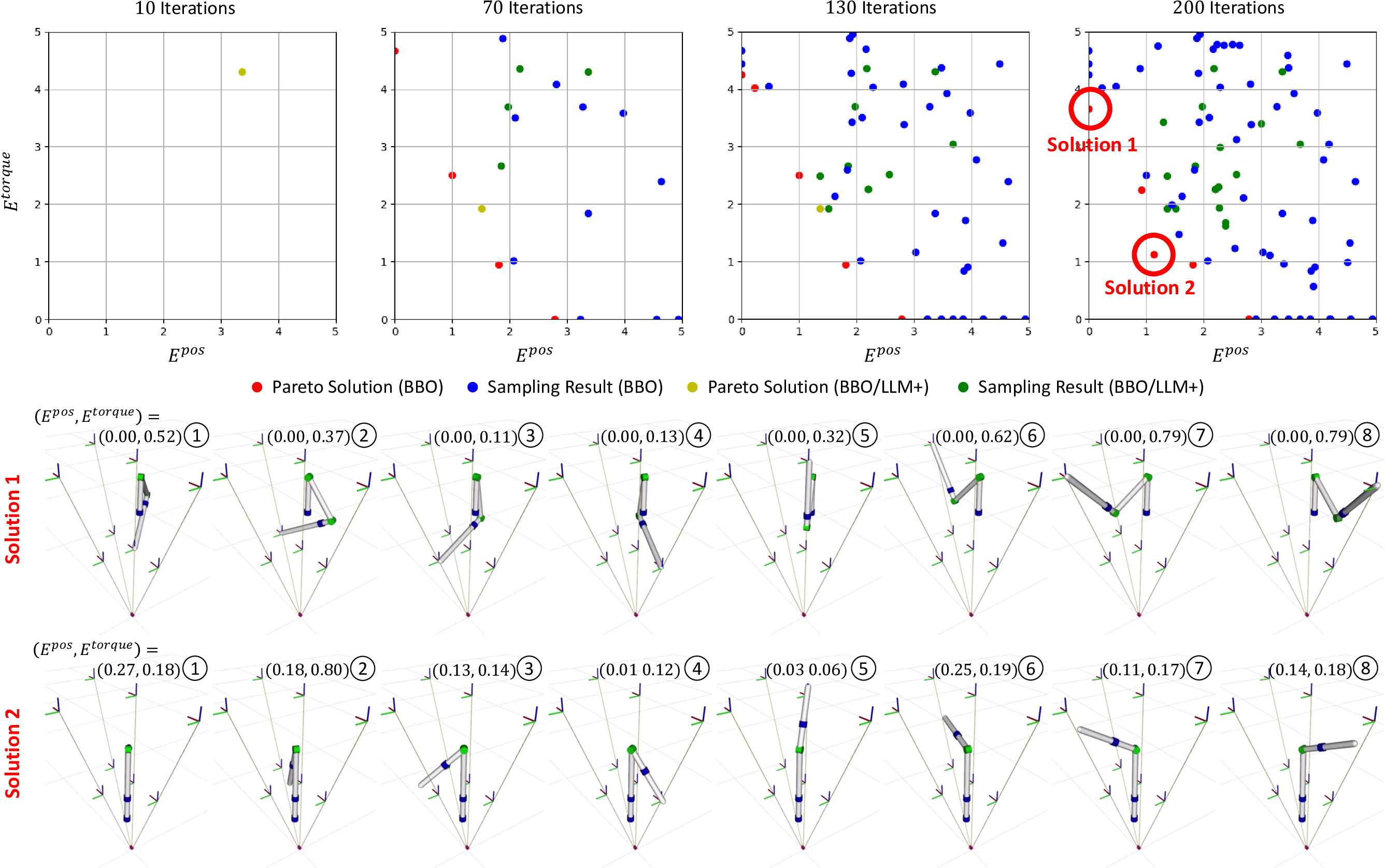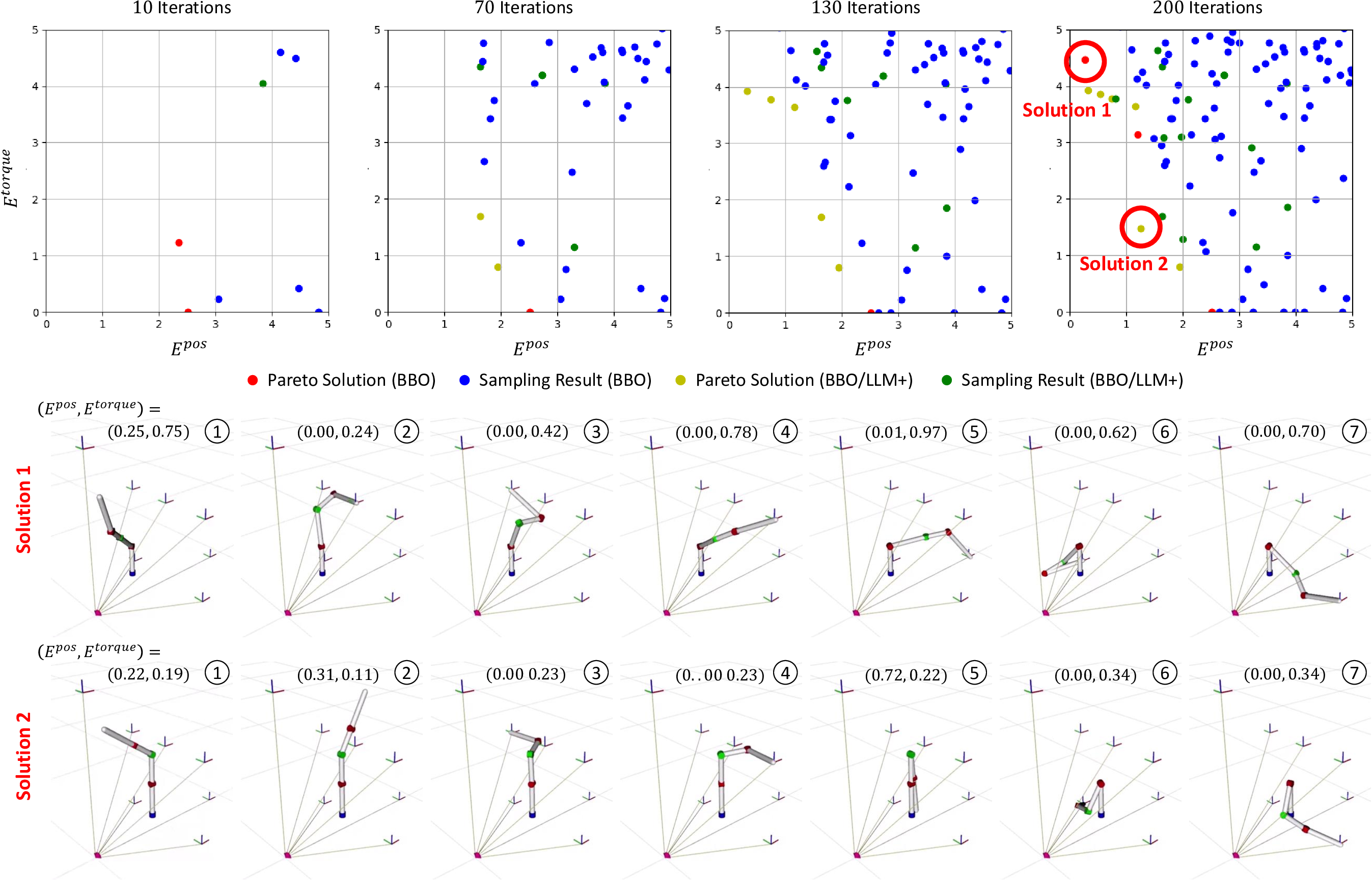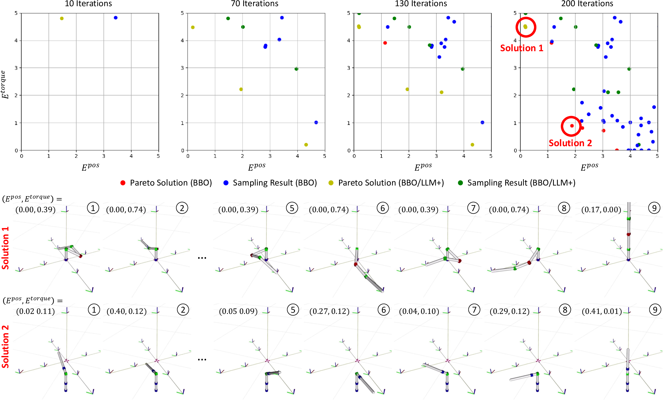 Hypervolume evaluation and ablation studies show improved performance and stability when LLM-based sampling is included.